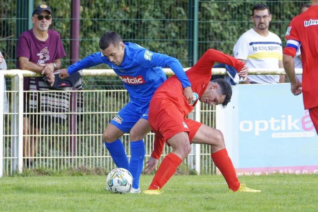Saint-Saturnin La Milesse et Yann Queffelou (en rouge), ici contre le Sabolien Simon Guerlus au 4e tour de la Coupe de France 2022, se sont imposés à nouveau. © Photo : Dominique Breugnot / Archives.