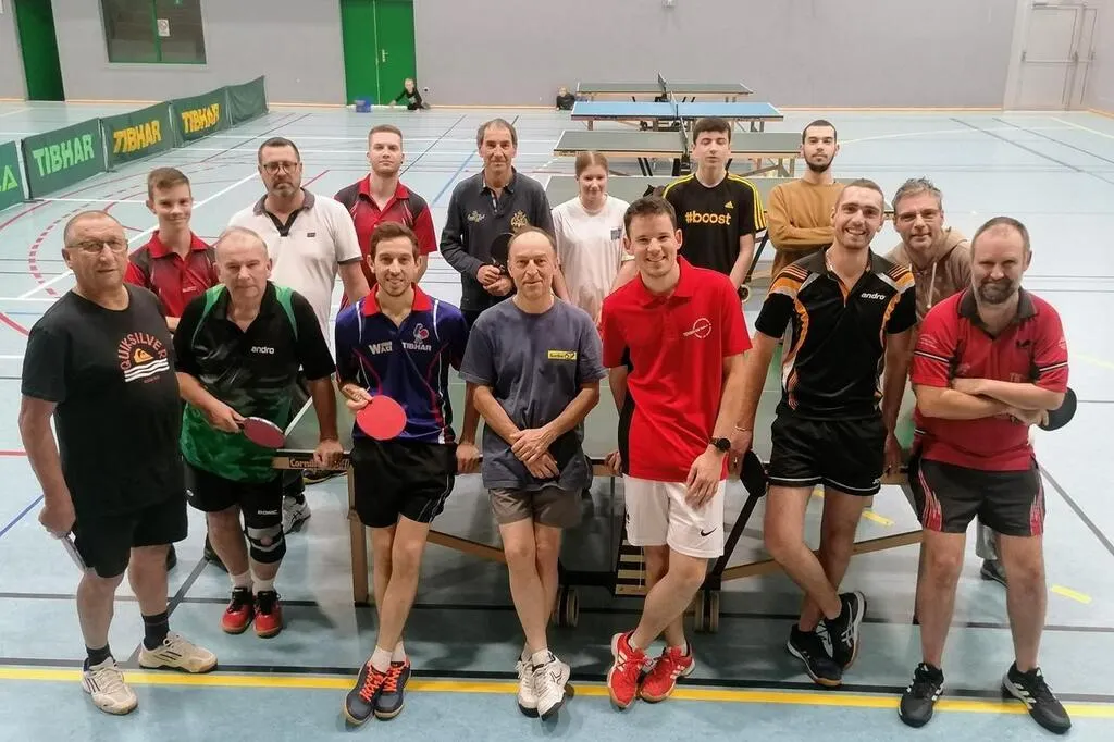 Les membres du bureau de la section tennis de table de Laigné – Saint-Gervais et quelques adhérents lors d’un entraînement. © Le Maine Libre