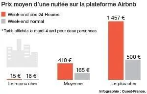 Le temps d’un week-end, la nuitée sera plus chère au Mans qu’à Manhattan ou qu’à Paris. 410 €, c’est le prix moyen par nuit affiché ce mardi 4 avril 2023 par Airbnb pour se loger ...