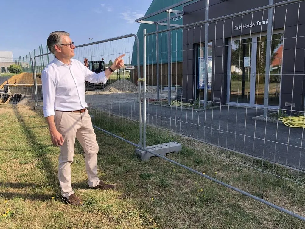 Le maire Laurent Paris sur le chantier de l’extension du club-house de tennis. © Le Maine Libre