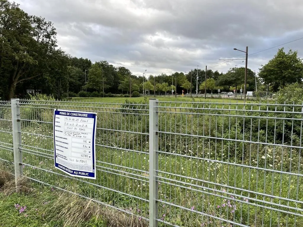 Le permis de construire est affiché sur une grille à proximité du terminal de la ligne de tramway T1, au pied du stade Marie-Marvingt. © Le Maine Libre