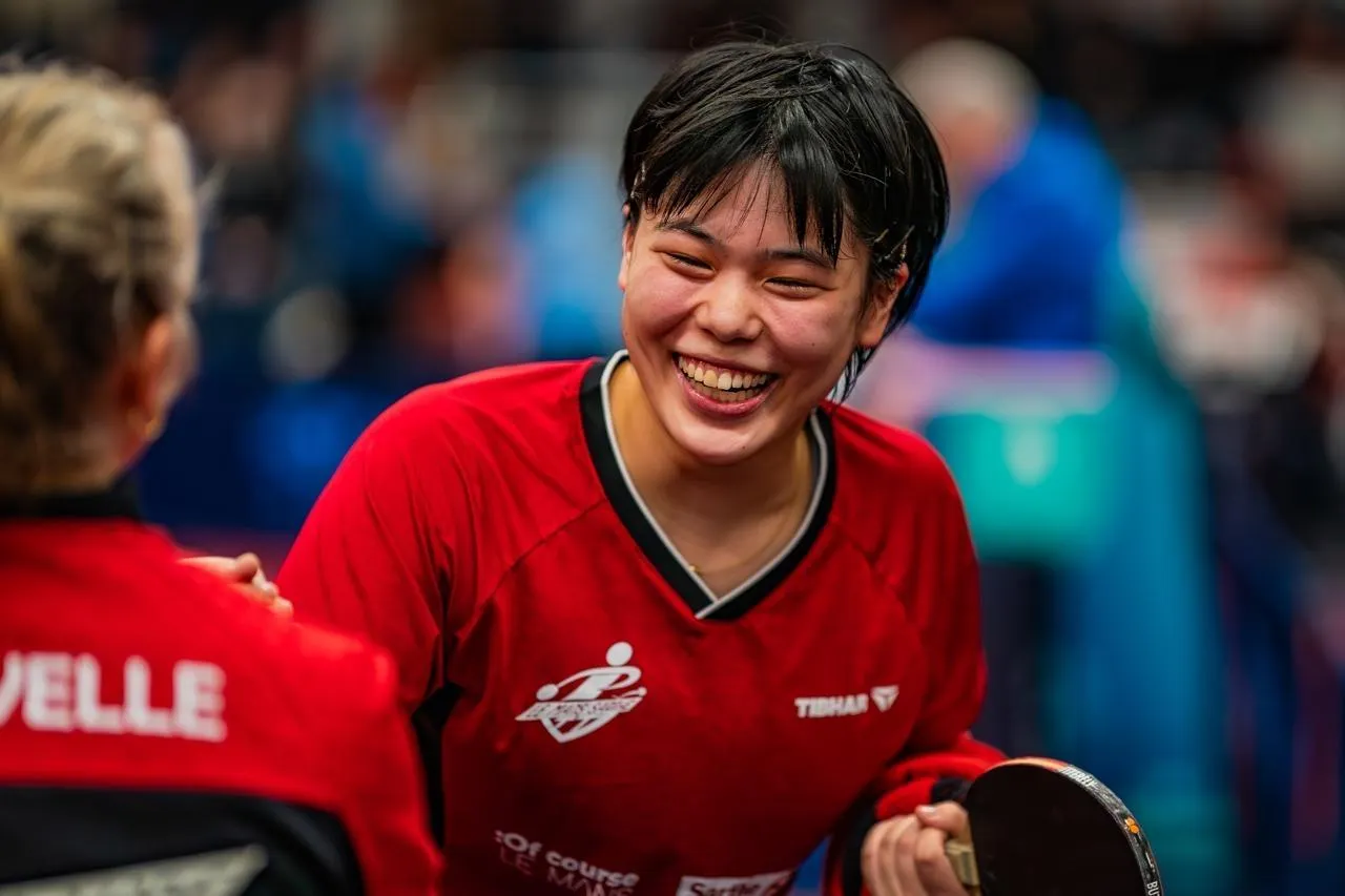 La joie de Kotomi Omoda, qui a assumé son statut de n°1 du Mans Sarthe tennis de table. ©  Arnaud Despelchain / Ouest-France