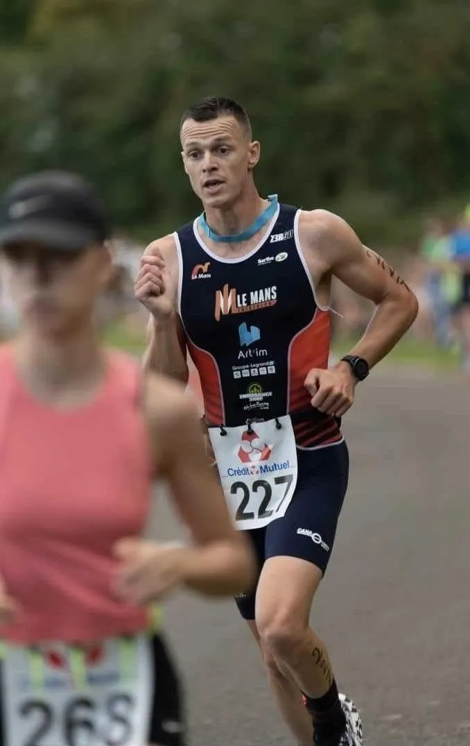 Jean-Loup Bellot aura à cÅ“ur de montrer la tenue du Mans Triathlon © Ouest-France