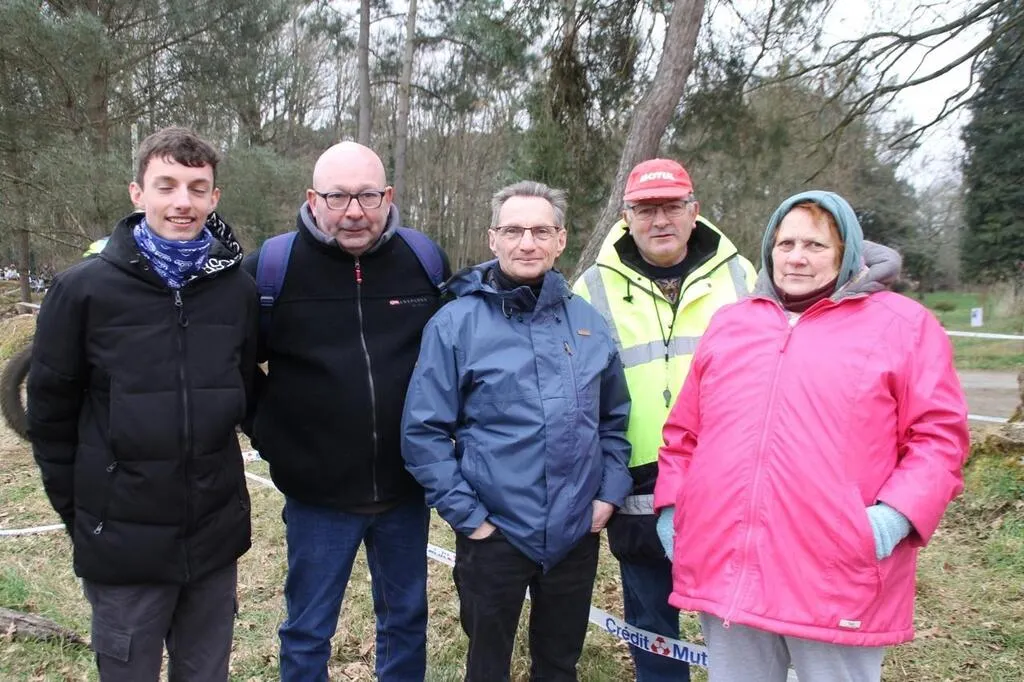 Le président Michel Besnard avec le secrétaire, son petit-fils et deux commissaires (à droite). © Le Maine Libre