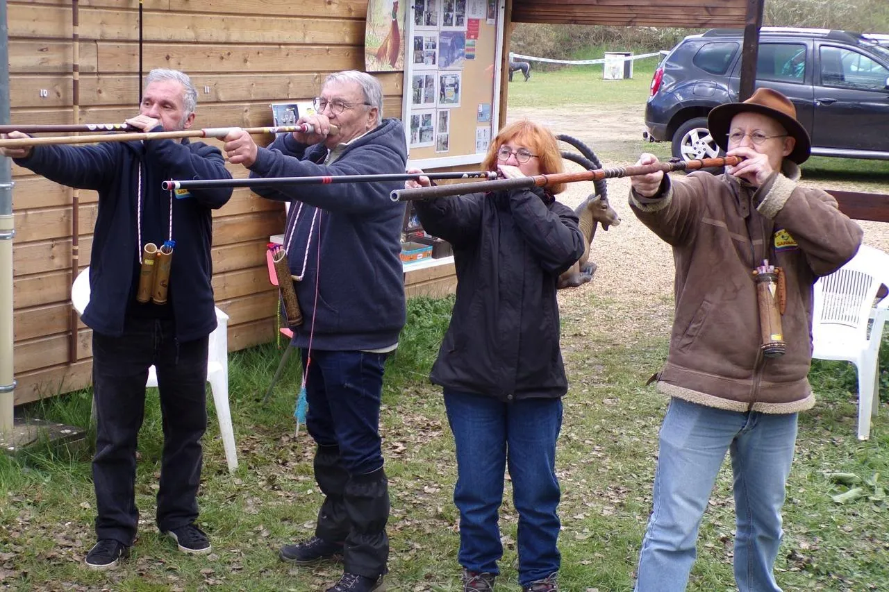 Des adhérents font une démonstration de tir à la sarbacane. © Le Maine Libre