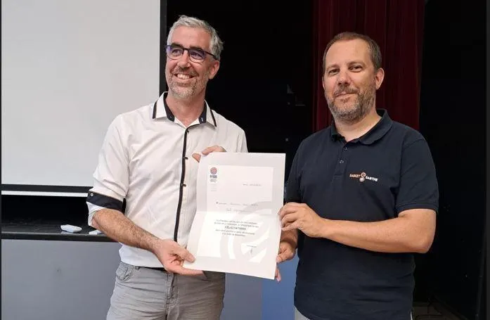 Au cours de l’assemblée générale, Erwann Malet-Patey, trésorier du club, a reçu une lettre de félicitations de la Fédération française de basket-ball (FFBB), et Christophe Barbault, responsable technique, a reçu la médaille de bronze de la FFBB. © Ouest-France