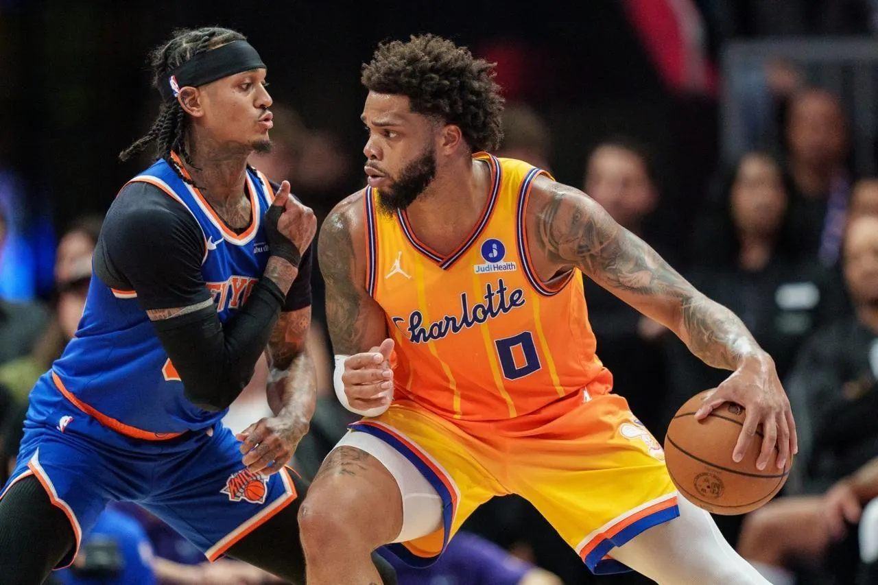 Les New-Yorkais ont marqué les deux premiers points mais ont ensuite vu les Hornets passer devant et maîtriser toute la partie, dans la foulée de leur rookie Kon Knueppel (26 points, 11 rebonds, 8 passes).