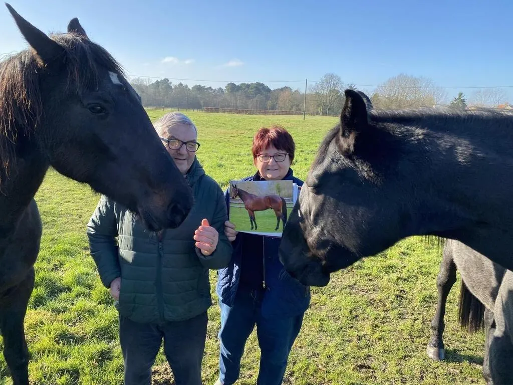À Vaas, dans le sud-Sarthe, Giselle et Jean-Pierre Guay ont élevé, jusqu’à 18 mois, leur vigoureux trotteur Hohneck qualifié une nouvelle fois au Prix d’Amérique, dimanche 29 janvier 2023. © Archives Ouest-France.