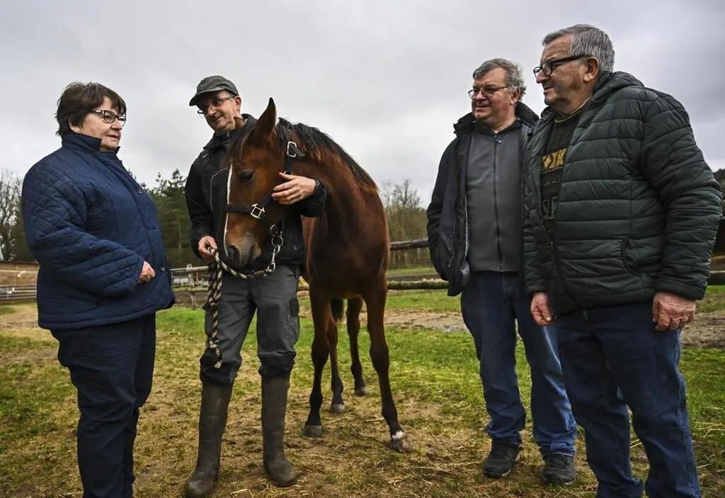 Vaas, jeudi 25 janvier 2024. Gisèle, Stéphane, Jean-François et Jean-Pierre (de gauche à droite) suivront de très près Hohneck et Izoard Védaquais ce dimanche au Prix d’Amérique. Deux chevaux nés chez eux. © Le Maine Libre – Denis LAMBERT