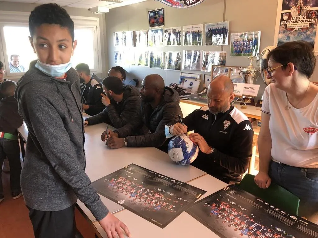 Après deux jours de repos suite à un succès ô combien important aux dépens de Brest (1-0) en championnat de Ligue 1, les footballeurs d’Angers Sco sont venus s’entraîner à Sablé-sur-Sarthe (Sarthe) mercredi 23 mars 2022, visiter les installations de leur sponsor Le Gaulois et rencontrer les jeunes de l’école de foot du Sablé FC.