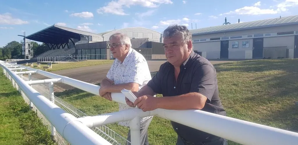 Michel Tessier (à gauche), trésorier, de la Société des courses de Sablé, et Michel Beliard, bénévole. Tous les deux vont parier dimanche. © Ouest France
