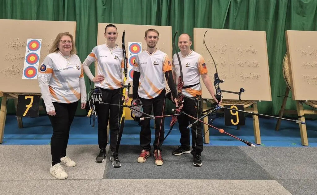 Les archers fléchois et la capitaine de la Compagnie d’arc de La Flèche (Sarthe) au championnat régional qui s’est tenu ce dimanche 9 février 2025. © Compagnie d’arc de La Flèche
