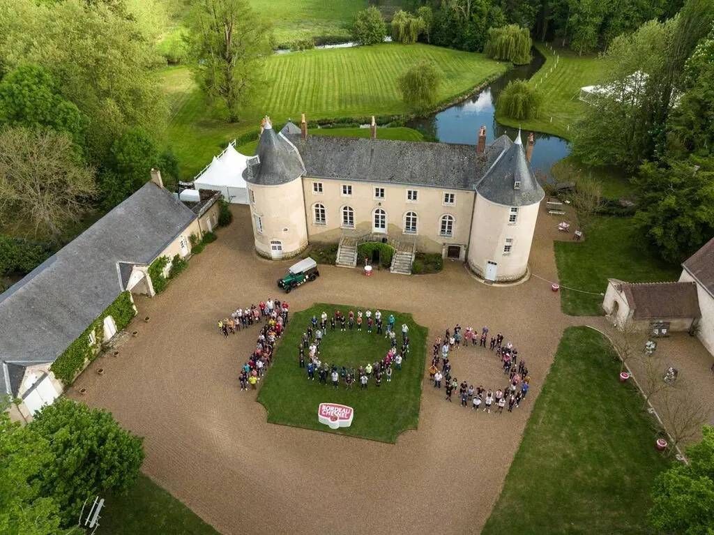 Les salariés de Bordeau Chesnel ont célébré le centenaire de l’entreprise à Beillé, vendredi 6 mai 2022, en formant le nombre 100 vu du ciel. © Agence Air 2D3