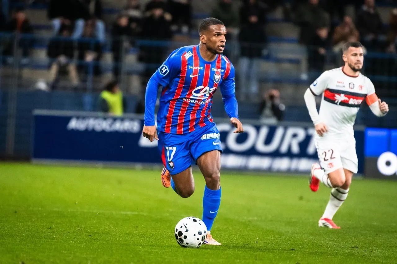 Ronny Labonne, le latéral du SM Caen, a inscrit son premier but en National, vendredi 27 mars 2026. © Justin Picaud / Ouest-France