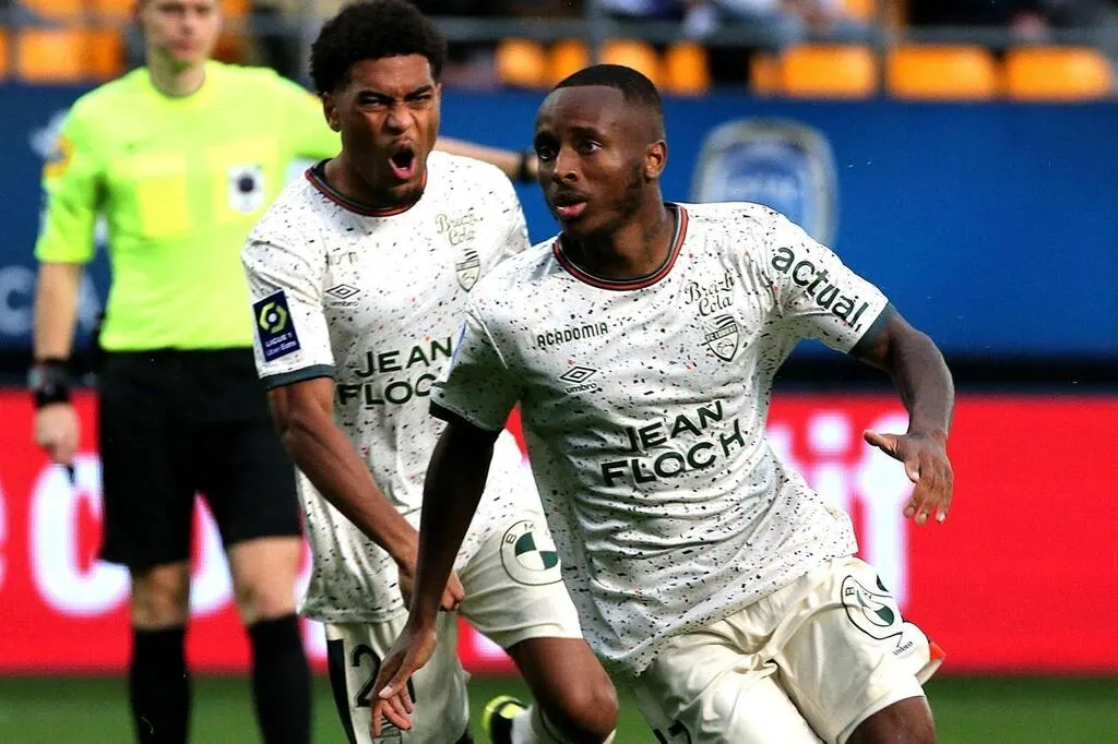 Stéphane Diarra célèbre son but, en Ligue 1, avec Lorient contre Troyes. © AFP