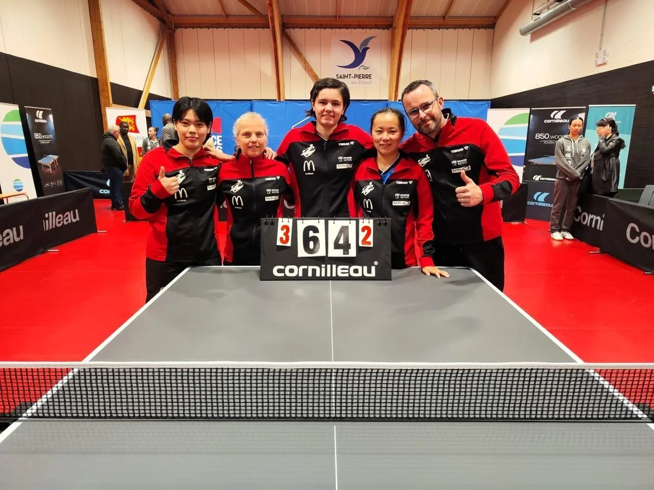Le Mans (Kotomi Omoda, Élodie Nivelle, Alexia Nodin, Li Samson avec leur coach, Jérôme Surand) ont gagné les deux rencontres. © Le Mans Sarthe TT