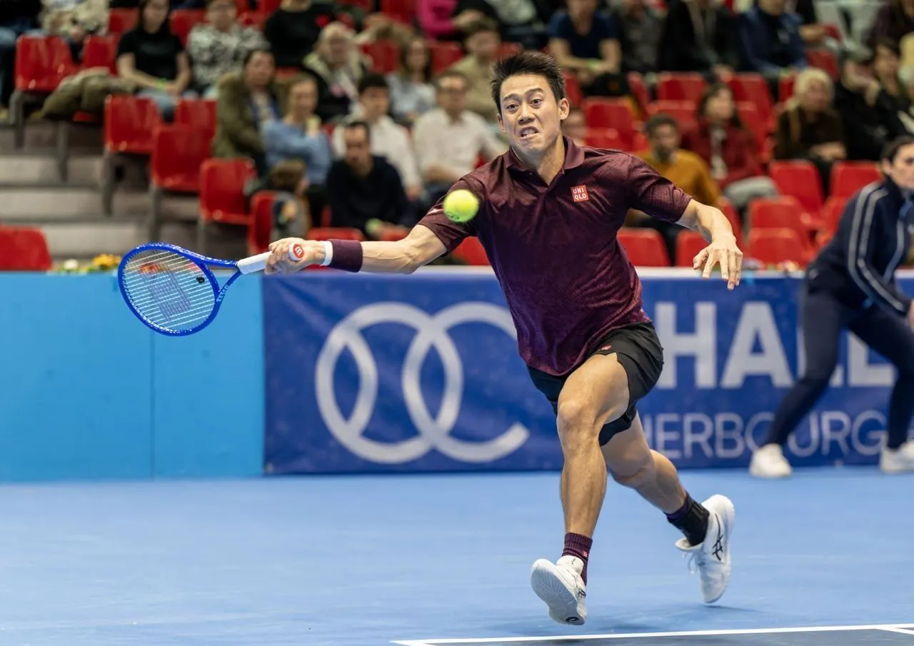 Il était 18 h 45 quand le Japonais âgé de 36 ans, vainqueur de 12 titres ATP, est entré sur le court, ce lundi 9 mars 2026. Pas sur la surface dure du Masters 1 000 d’Indian Wells, en Californie, où les meilleurs joueurs du monde s’affrontent actuellement, mais à 8 700 kilomètres de là, de l’autre côté de l’Atlantique, sur le terrain indoor du complexe sportif d’Équeurdreville-Hainneville, au Challenger de Cherbourg (Manche).