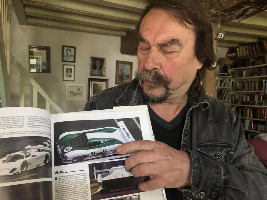 Patrick Hoft, avec la photo de la WM P88 qui détient toujours le record de vitesses aux 24 Heures du Mans. © Le Maine Libre