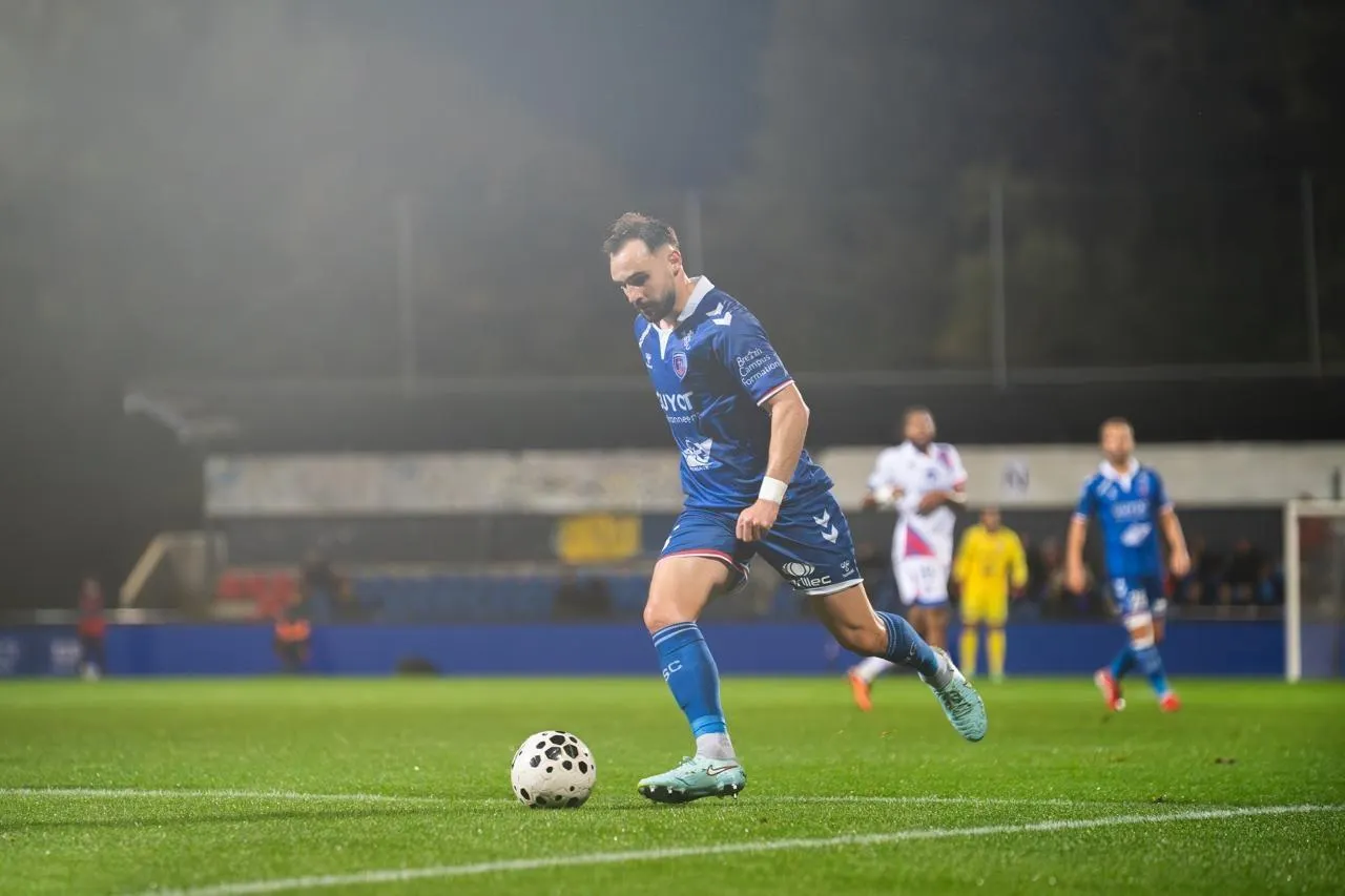 Baptiste Etcheverria face à Châteauroux lors de la rencontre au Stade Guy-Piriou, le 21 octobre 2025. © Téo Floc’h