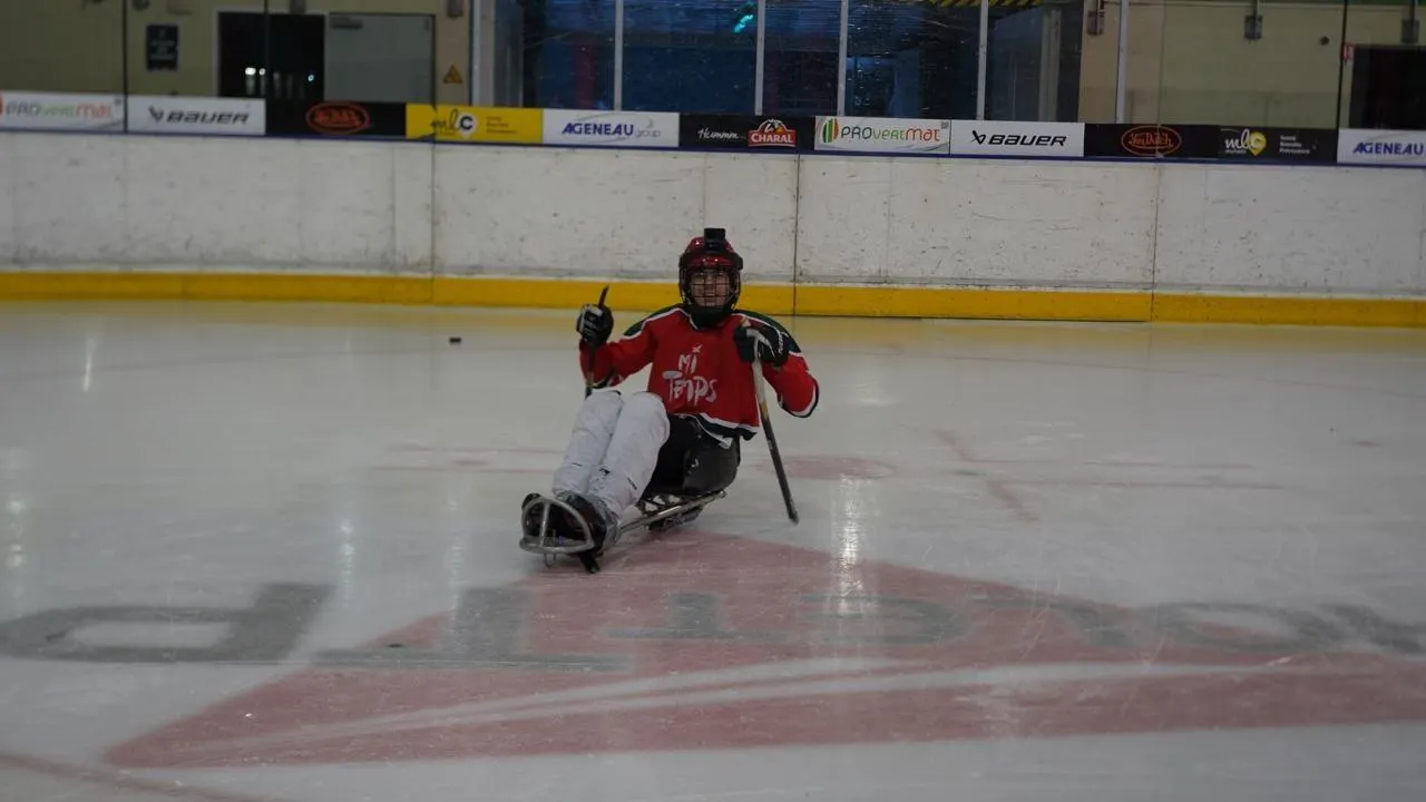 Matteo s’est essayé au parahockey sur glace avec l’équipe de Cholet et le capitaine de l’équipe de France. Un reportage à retrouver en vidéo sur notre chaîne YouTube Kolok. © Ouest-France