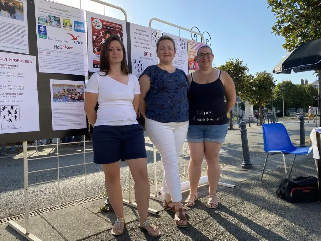 De gauche à droite : Marine Mangeot, trésorière, Dolorès Chartier, présidente de la section, et Bérengère Creuset, secrétaire, accueillent les enfants et les parents qui souhaitent participer aux activités sportives de la Vigilante Omnisports. © Le Maine Libre