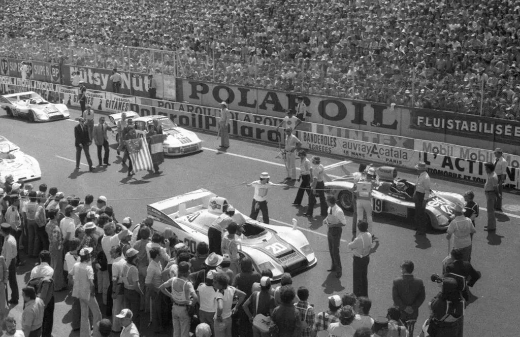 La montée des drapeaux lors des 24 Heures du Mans en 1976. Photo d’illustration. © ARCHIVES OUEST-FRANCE